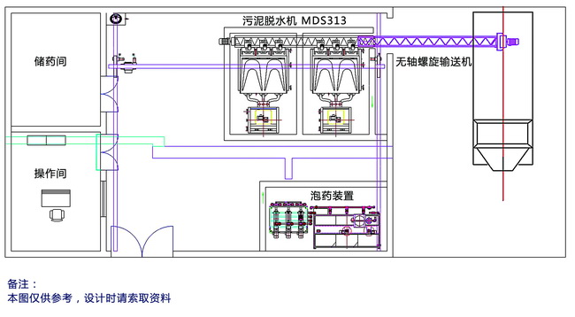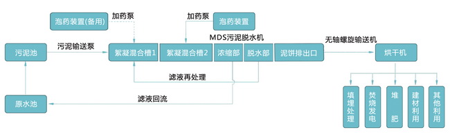 4、脫水后的泥餅從泥餅排出口排出,直接或通過無軸螺旋輸送機送至運泥車,進行再利用。