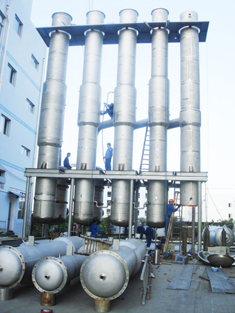 07.大型設(shè)備采用直立落地式結(jié)構(gòu),整套設(shè)備結(jié)構(gòu)緊湊,占地面積小,布局簡單流暢,代表了大型成套蒸發(fā)設(shè)備的發(fā)展方面。